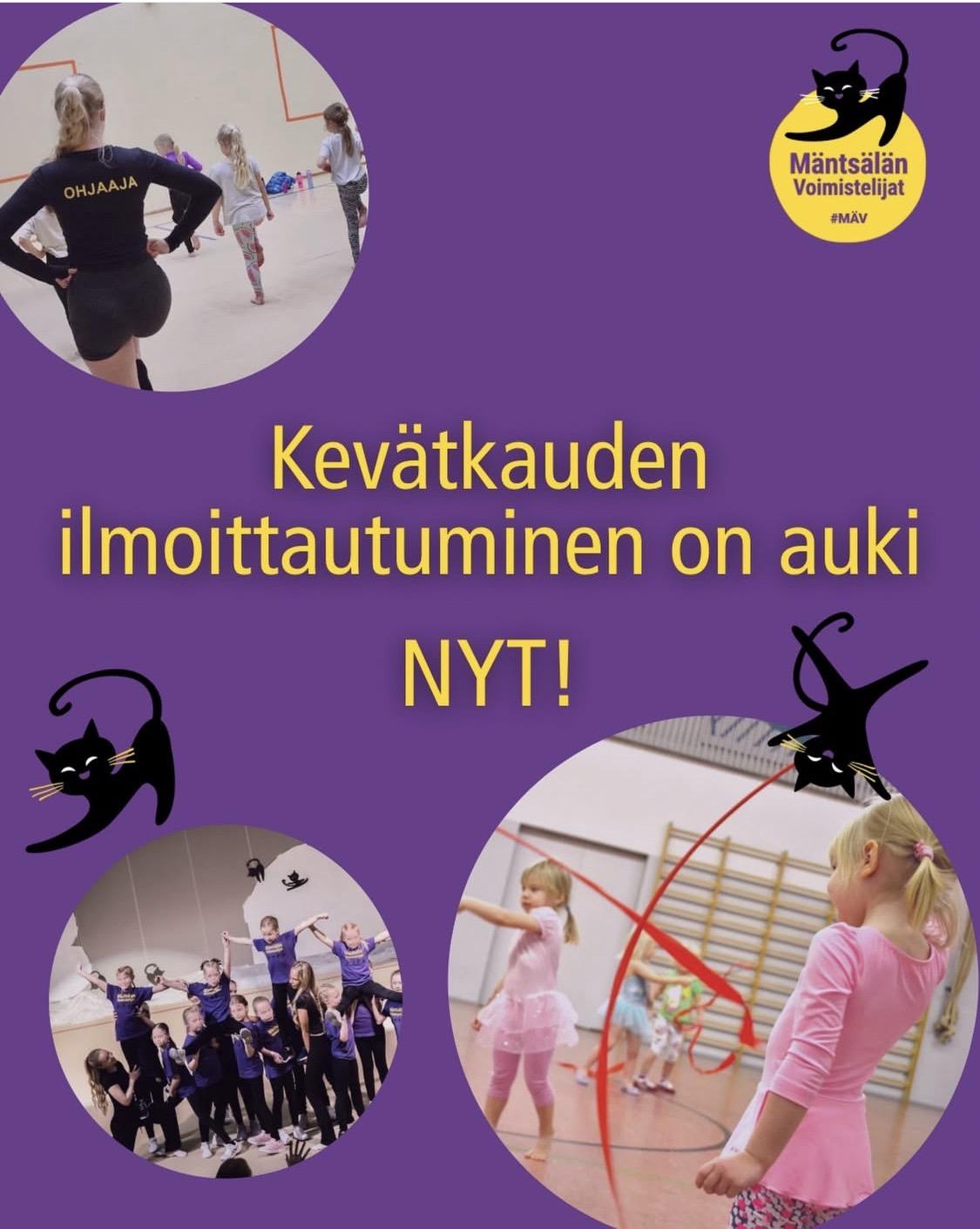 Mäntsälän Voimistelijat tarjoaa vkoilla 50 ja 51 maksuttomia lasten kokeilutunteja! Tarjolla on mm. temppurataa, tanssia ja akrobatiaa. Nappaa kavereita mukaan ja tule liikkumaan sekä oppimaan uutta!…